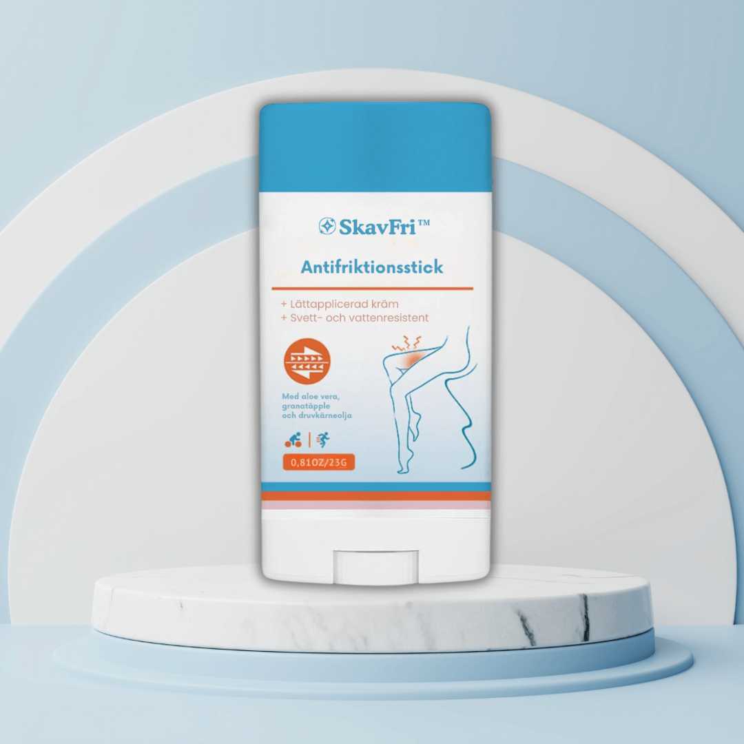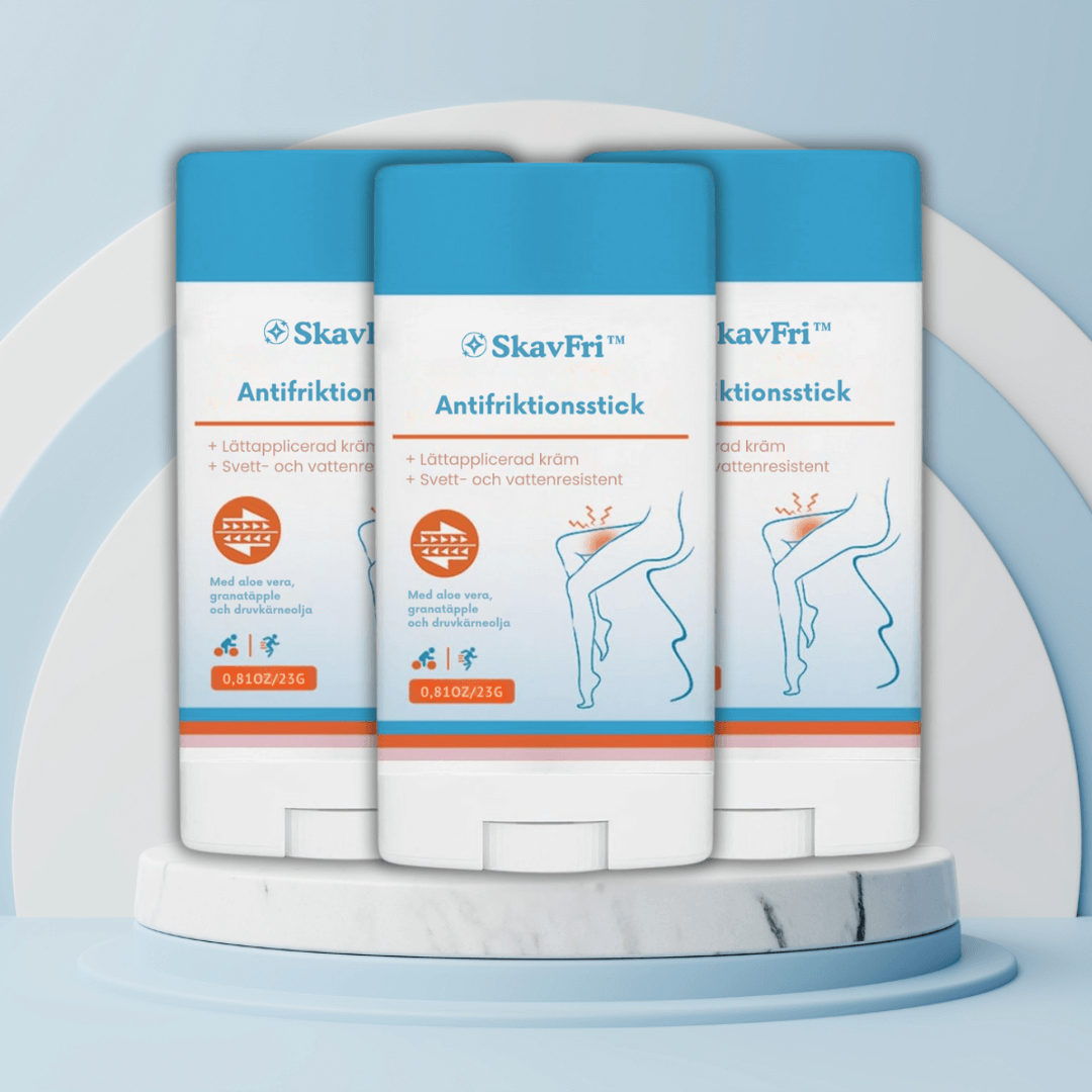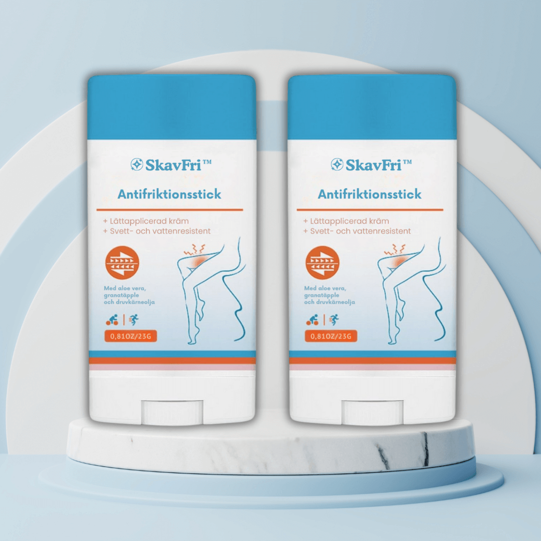 Känner du igen röda, svidande hudområden i hudveck som skaver, bränner eller känns fuktiga när du rör dig, svettas eller har tajta kläder SkavFri™ är ett smidigt antifriktionsstick som lägger en tunn skyddande hinna som hjälper till att minska friktion och ge huden en torrare, bekvämare känsla.